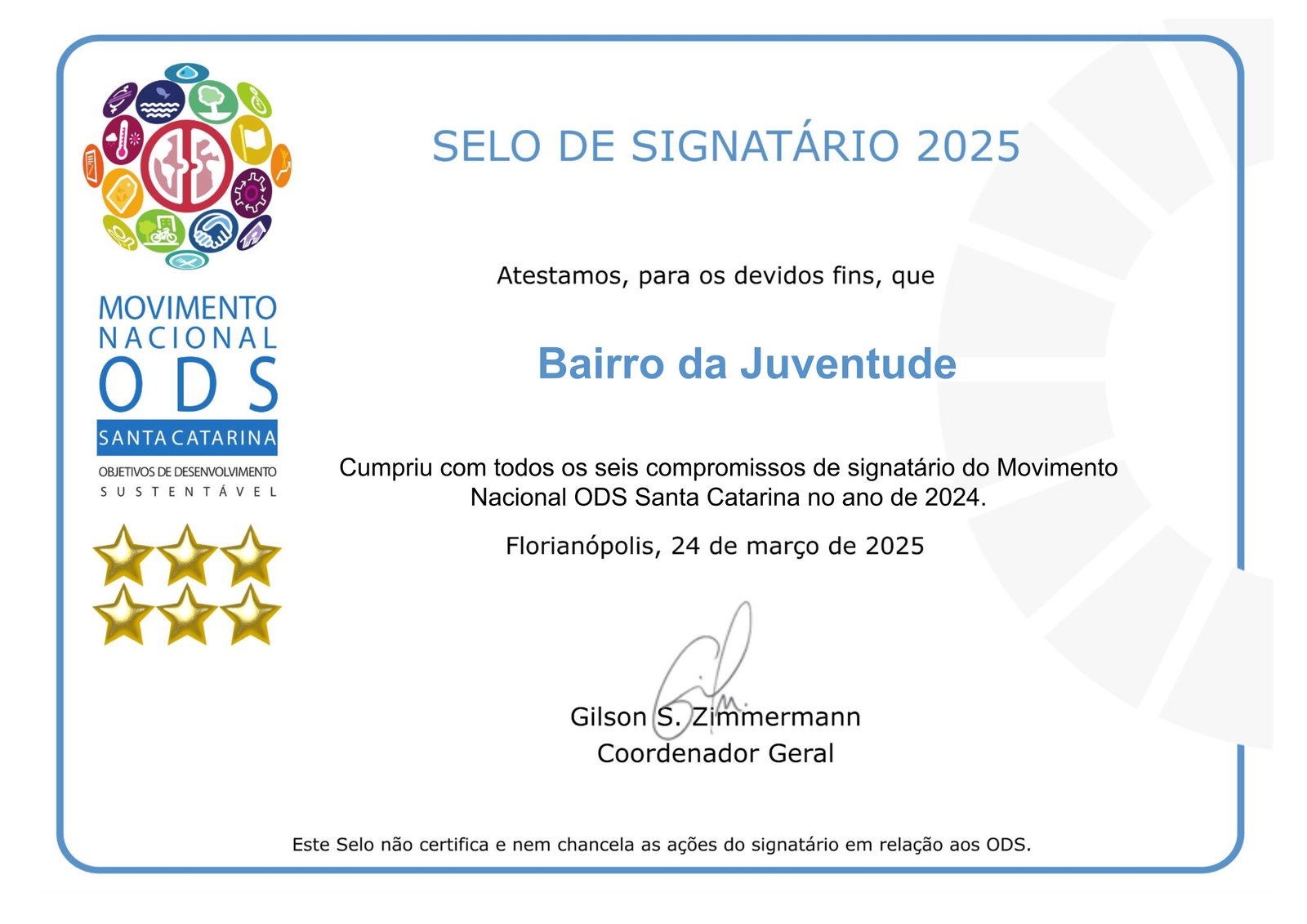 A partir deste documento, a instituição reconheceu as ações de sustentabilidade os aspectos ESG (ambiental, social e governança). Essas práticas se concentram em questões como impacto ambiental, energias renováveis, gestão de resíduos, respeito aos direitos humanos e justiça social, integridade nos negócios e prestação de contas transparente. Os indicadores ESG são utilizados para medir e conferir os compromissos assumidos e alinhados com os 18 ODS's, que são indicadores de sustentabilidade da Organização das Nações Unidas (ONU). Ao associar os ODS's às ações desenvolvidas pelo Bairro da Juventude, torna-se evidente a profunda interconexão entre diversas metas globais a nossas praticas. Essas ações impactaram no atendimento das crianças, adolescentes e jovens envolvidos, além de disseminarem os ODS's com práticas coerentes e alinhadas aos indicadores de sustentabilidade da ONU, englobando ações educativas voltadas à Educação Ambiental com ênfase nos ODS's.